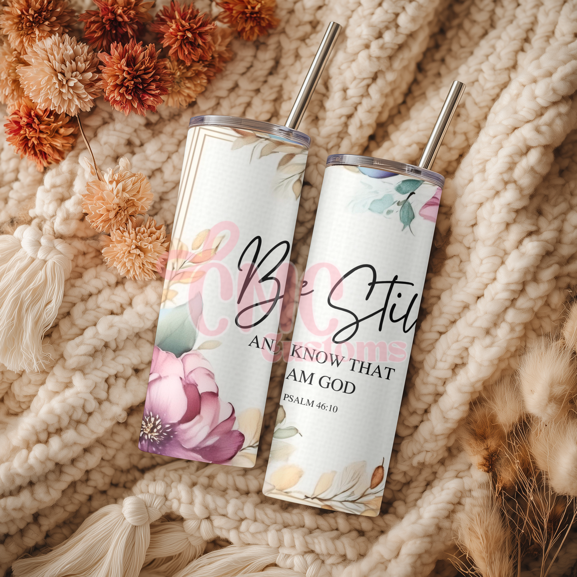 Stay cozy or refreshingly cool with the "Be Still And Know" insulated tumbler. Featuring the inspiring Psalm 46:10, this tumbler keeps your drinks hot or cold for up to 12 hours—perfect for those moments when you just need to pause and sip in peace.