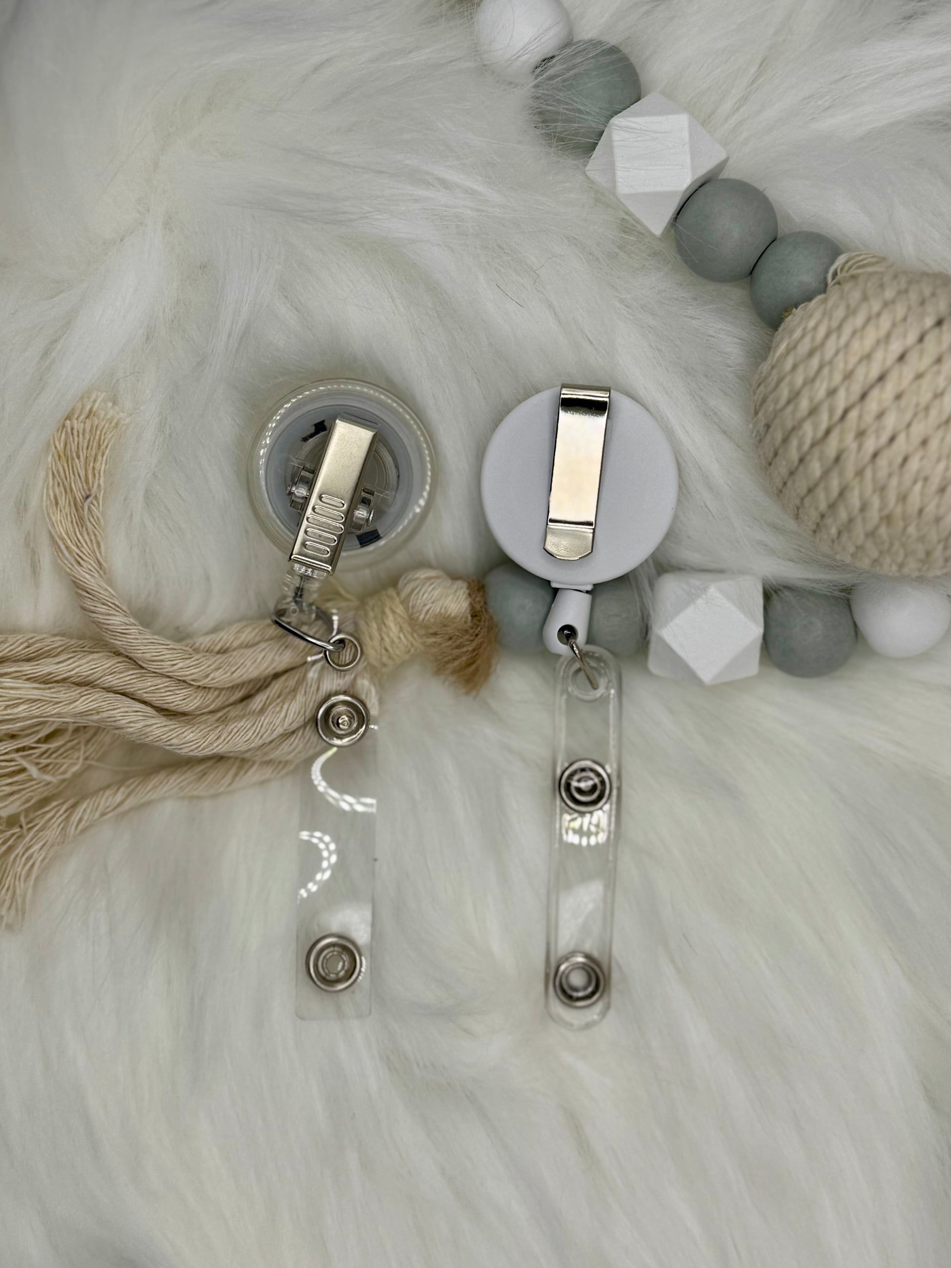 This retractable reel is a fun accessory for anyone who is required to wear a badge and makes a great gift! Comes as an alligator or belt clip as well as beads or no beads! Your choice!
